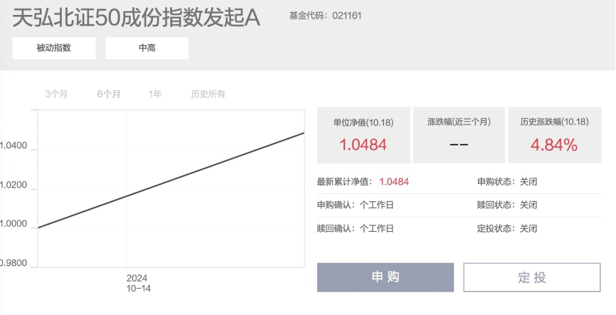 10月21日,北证50指数大涨16%,该只基金将无间收益,不外其21日的最新净值仍未公布。